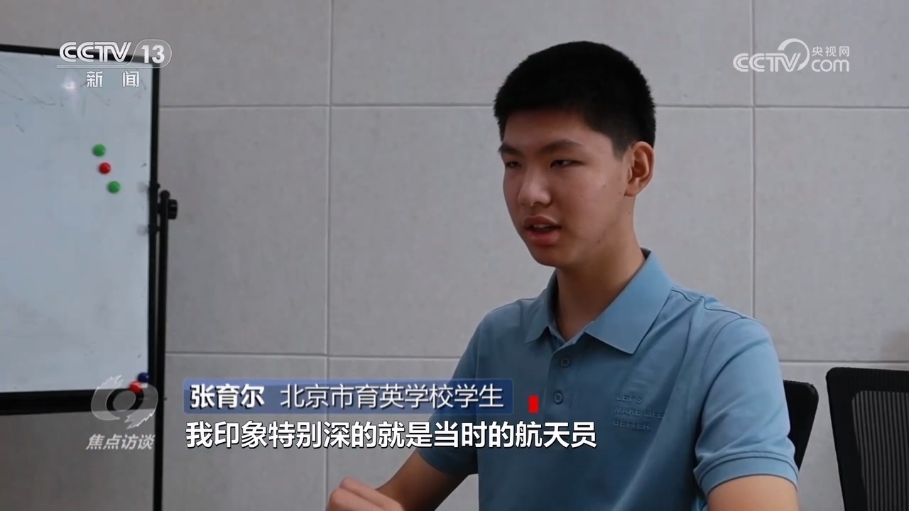 北京市育英學校學生張育爾:“我印象特別深的是當時航天員拿針筒把氣泡注射到水里,然后形成了一個類似于放大鏡的視覺效果,看到這個感覺很新鮮、很科幻,一開始是好奇心驅(qū)動了,后來就開始了解這方面的東西。”