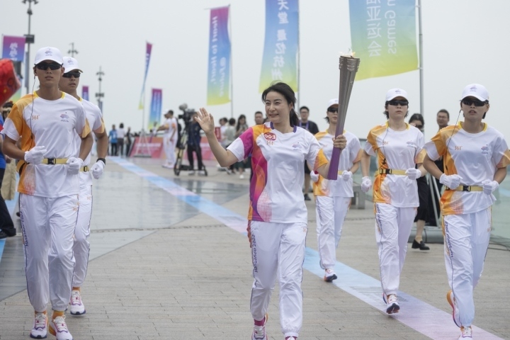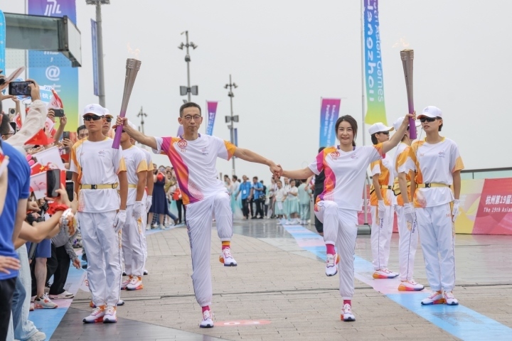 9月20日上午,杭州亞運(yùn)會火炬?zhèn)鬟f杭州站起跑儀式在杭州城市陽臺舉行。