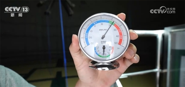 我現(xiàn)在是在氣膜倉(cāng)的頂部,此刻倉(cāng)外的溫度是30℃左右,我們?cè)俚絺}(cāng)內(nèi)看一下。一進(jìn)來就感覺倉(cāng)里邊一股涼氣襲人,我們來看這個(gè)溫度計(jì)上顯示此刻的溫度大概是在22℃,也就是說倉(cāng)內(nèi)外的溫差有8℃左右,保溫性能還是非常明顯的。