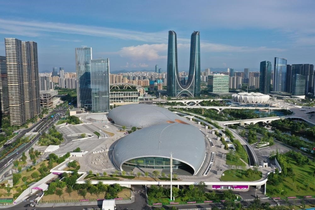 這是2023年6月28日拍攝的杭州奧體中心游泳館、體育館(無(wú)人機(jī)照片)。新華社記者 黃宗治 攝
