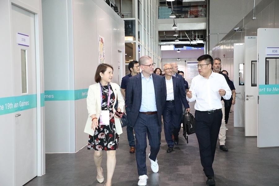 9月18日下午,國(guó)際奧委會(huì)首席信息科技官艾拉里奧·孔納一行考察杭州亞運(yùn)會(huì)信息技術(shù)指揮中心。(圖片來(lái)自杭州亞運(yùn)會(huì)官網(wǎng))