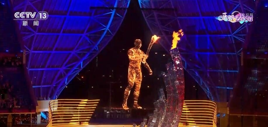同時,以數(shù)字虛擬現(xiàn)實技術、裸眼3D視覺特效、全景交互為代表的新技術手段輪番上陣,令觀眾仿佛穿越千年時光,沉浸式感受宋韻風雅。總臺提供大量錢塘江大潮實拍素材,融入地屏和網幕影像,生動呈現(xiàn)大潮涌動、勇立潮頭的澎湃效果,展現(xiàn)出運動健兒奮勇拼搏的體育精神。亞運歷史上首次實現(xiàn)的“數(shù)實結合”的點火儀式,極富沖擊力的畫面為觀眾營造出充滿想象與寫意的視覺奇觀。