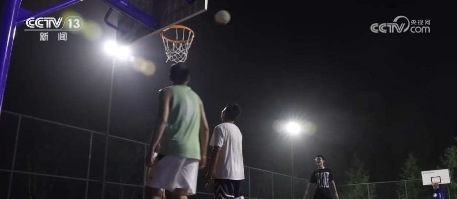 除了足球場,村里還有一塊標(biāo)準(zhǔn)的籃球場。如果天氣好的話,這里幾乎每天晚上都有村民來這兒打球。