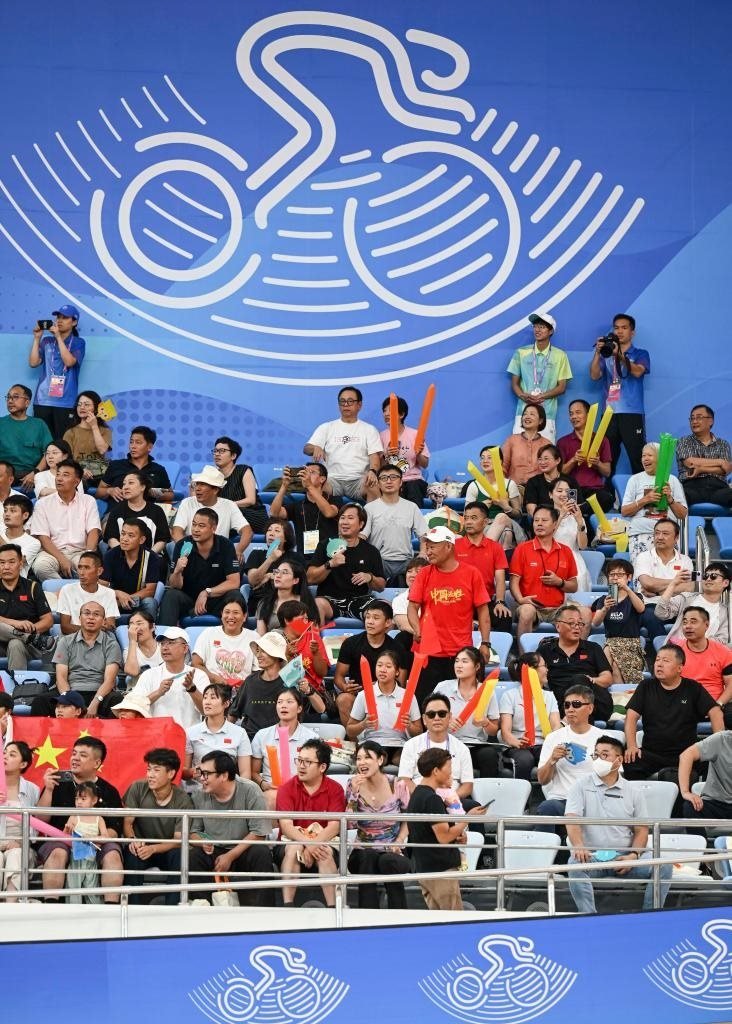 9月26日,觀眾在杭州亞運會場地自行車男子團(tuán)體競速賽場邊觀賽。新華社記者 胡虎虎 攝