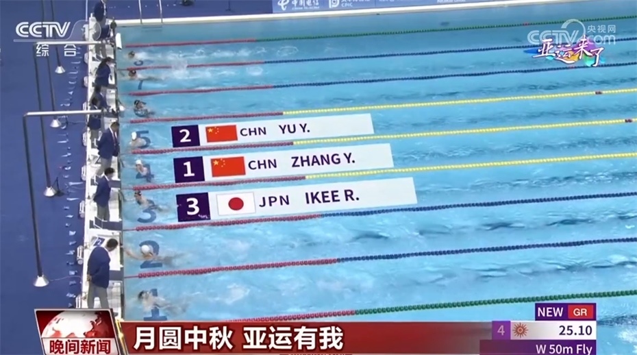 游泳賽事來(lái)到收官日,在9月29日晚進(jìn)行的各項(xiàng)決賽中,率先出場(chǎng)的張雨霏用打破亞運(yùn)會(huì)紀(jì)錄的成績(jī)拿到了50米蝶泳的金牌,這也是她在本屆亞運(yùn)會(huì)拿到的第6枚金牌。