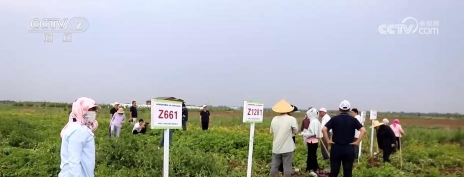張慶喜所說(shuō)的耐鹽堿品種是破解鹽堿地開(kāi)發(fā)利用的另一個(gè)關(guān)鍵。記者在當(dāng)?shù)佧}堿地農(nóng)業(yè)示范基地采訪時(shí),正好趕上科學(xué)家團(tuán)隊(duì)研發(fā)的耐鹽堿馬鈴薯新品種測(cè)產(chǎn)驗(yàn)收。經(jīng)過(guò)1個(gè)多小時(shí)現(xiàn)場(chǎng)測(cè)產(chǎn),結(jié)果顯示,在2‰輕度鹽堿地上示范推廣的兩個(gè)品系畝產(chǎn)達(dá)到3300公斤左右的較高產(chǎn)量水平。