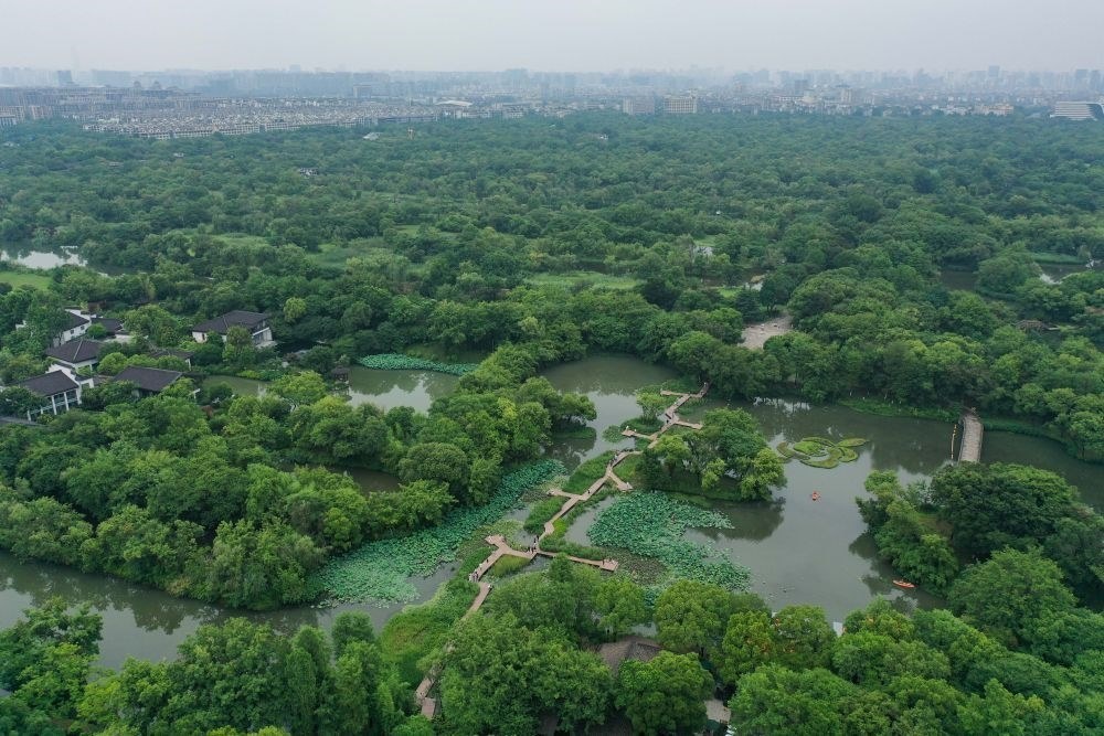 西溪國家濕地公園(無人機(jī)照片,6月17日攝)。新華社記者 黃宗治 攝
