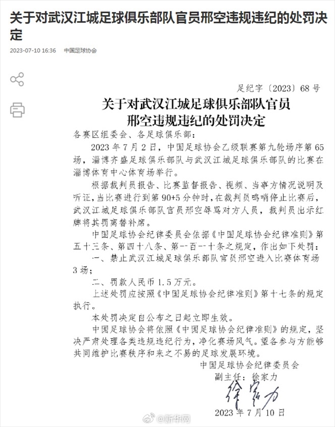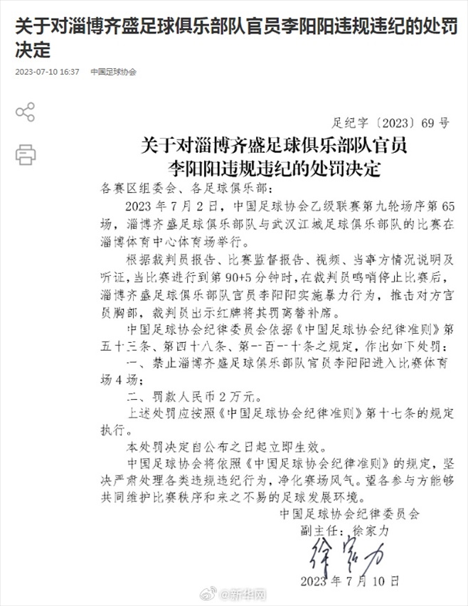 ·中國(guó)足協(xié)再開罰單,兩名俱樂(lè)部官員因違規(guī)違紀(jì)被罰。