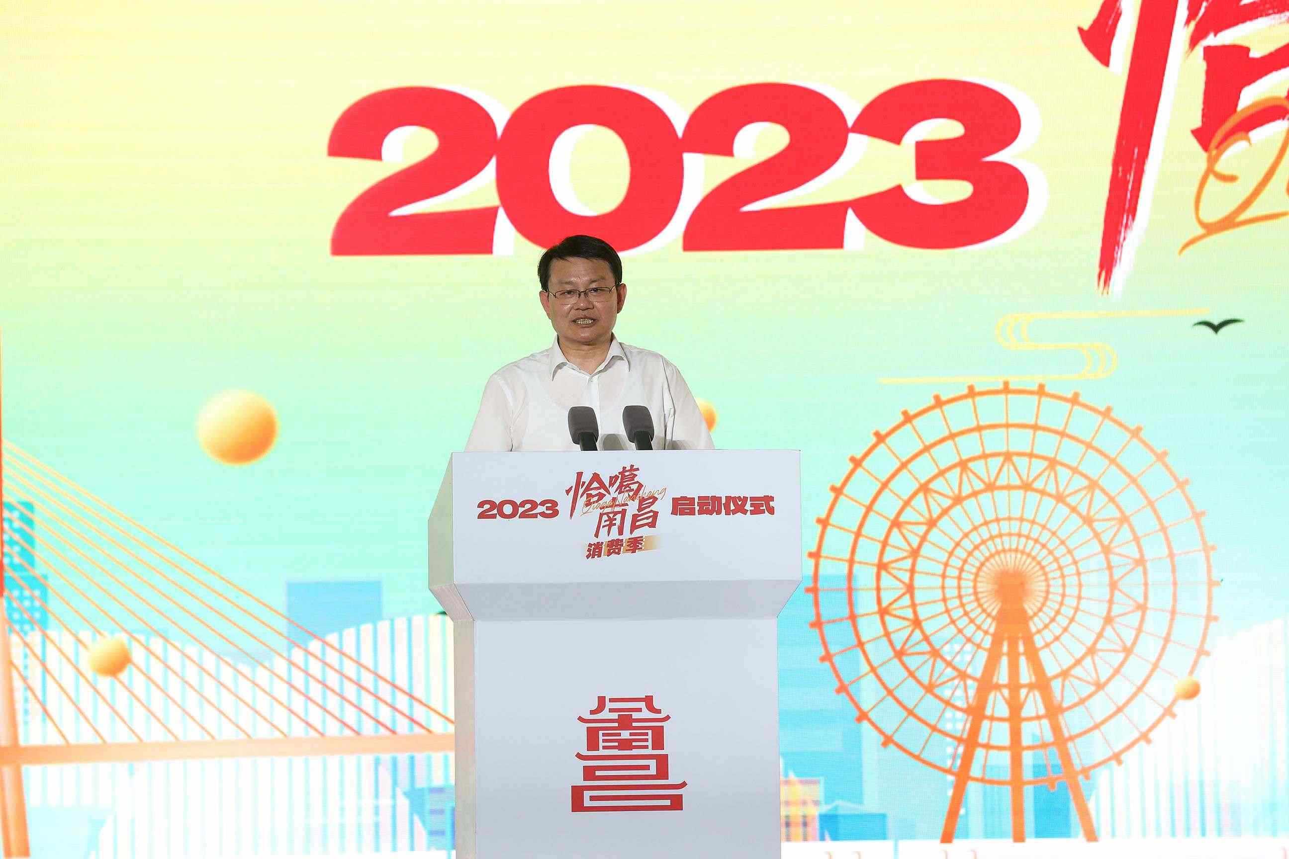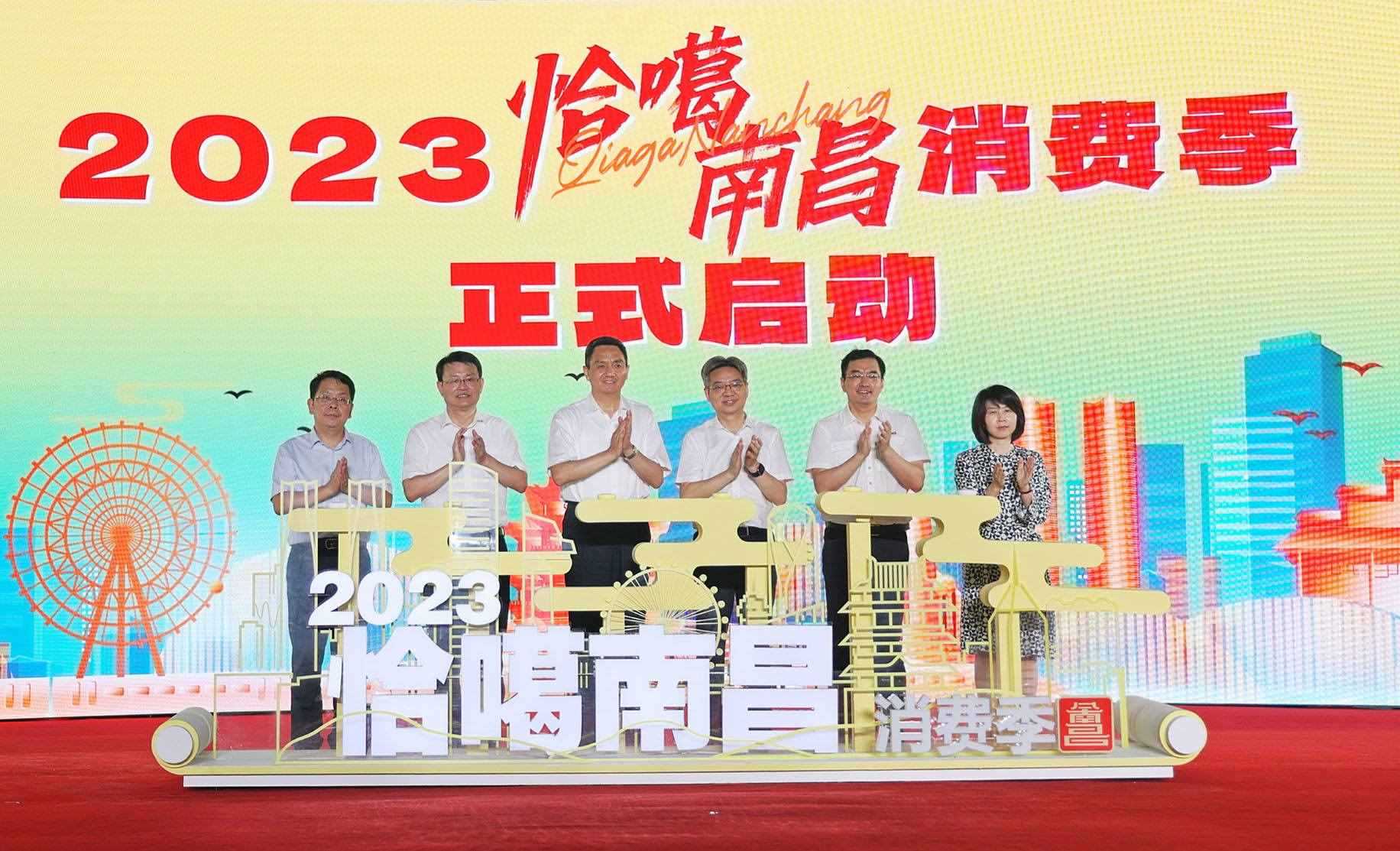 江西省委常委、南昌市委書記李紅軍,中央廣播電視總臺(tái)總經(jīng)理室副召集人徐立軍,南昌市委副書記、市人民政府市長(zhǎng)萬廣明,中央廣播電視總臺(tái)江西總站黨委書記宋大珩,江西省商務(wù)廳黨組成員、副廳長(zhǎng)饒芝新,央視網(wǎng)黨委委員、副總編輯唐曉艷共同啟動(dòng)了2023“恰噶南昌”消費(fèi)季。中央駐贛新聞單位領(lǐng)導(dǎo),南昌市各縣區(qū)、開發(fā)區(qū)、灣里管理局和市直有關(guān)部門領(lǐng)導(dǎo),江西省及南昌市品牌企業(yè)代表、