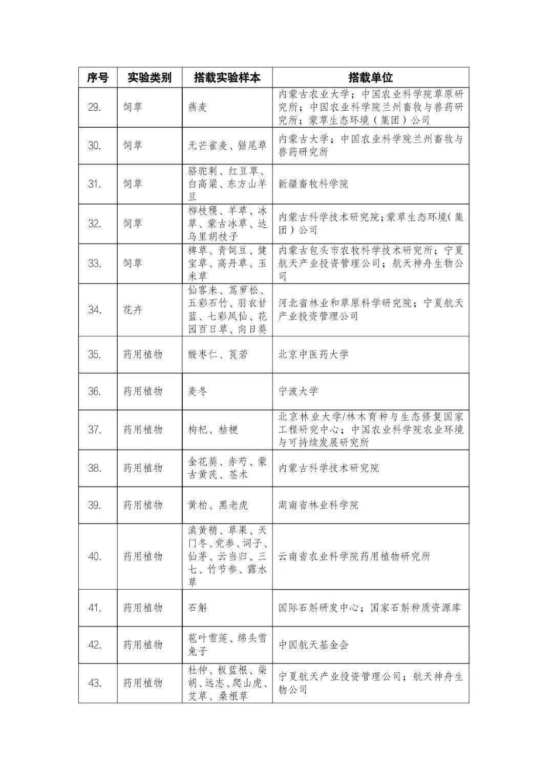 央視網(wǎng)消息:據(jù)中國載人航天公眾號(hào)消息,7月19日,中國載人航天工程辦公室公布神舟十六號(hào)載人飛船航天育種實(shí)驗(yàn)項(xiàng)目清單,詳情如下: