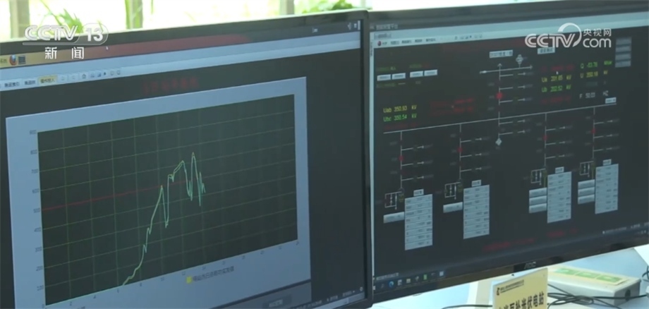 總臺記者 劉澤耕:我們現(xiàn)在來到的是龍羊峽水光互補光伏電站中控室,這塊屏幕上正在變化的數(shù)據(jù)是光伏電站發(fā)電的實時數(shù)據(jù)。光伏發(fā)電存在間歇性、波動性和隨機性等問題。在夜間,光伏電站出力為零,遇到陰雨天氣,云層遮擋住太陽,光伏電站發(fā)電能力也會迅速下降。這些因素都會導致光伏發(fā)電產(chǎn)生的電流呈現(xiàn)鋸齒狀,不僅會對電網(wǎng)造成沖擊,而且電壓不穩(wěn)定也會影響生產(chǎn)生活。而龍羊峽水電站水光互補,完美解決了光伏發(fā)電“靠天吃飯”的難題。
