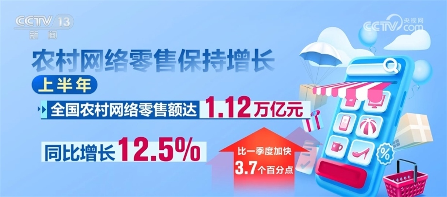 農(nóng)村網(wǎng)絡(luò)零售保持增長。上半年,全國農(nóng)村網(wǎng)絡(luò)零售額達(dá)1.12萬億元,同比增長12.5%,比一季度加快3.7個百分點。其中,農(nóng)村實物商品網(wǎng)絡(luò)零售額1.02萬億元,同比增長11.3%。全國農(nóng)產(chǎn)品網(wǎng)絡(luò)零售額0.27萬億元,同比增長13.1%。