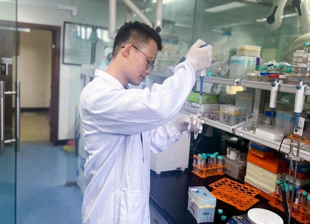 7月20日,四川大學助理研究員張勃慶在四川大學國家生物醫(yī)學材料工程技術(shù)研究中心的3D生物打印實驗室工作。新華社記者 吳曉穎 攝