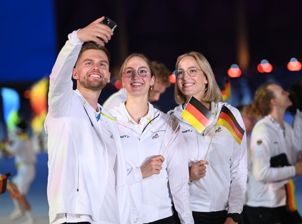 德國大學(xué)生體育代表團(tuán)在開幕式上入場(chǎng)。