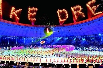成都大運會開幕式現(xiàn)場的文藝演出。本報記者 郭俊鋒攝/光明圖片