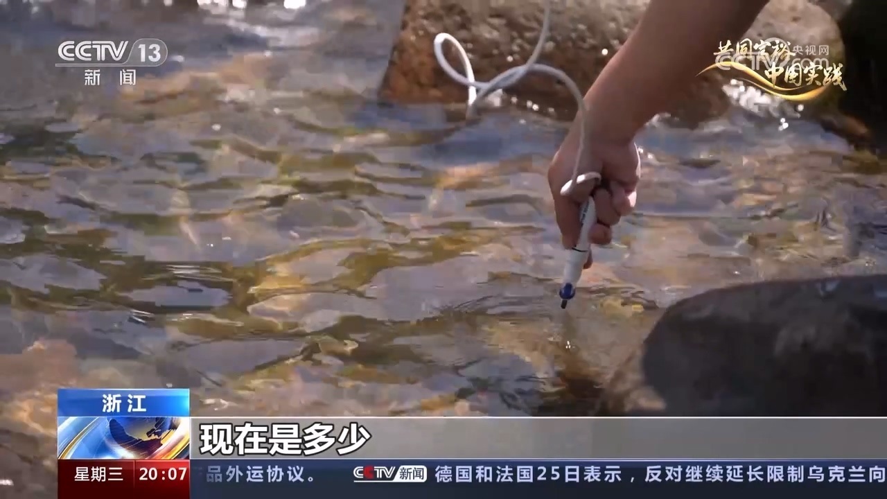 工作人員正在檢測(cè)溪水水質(zhì),為GEP中“水質(zhì)凈化”指標(biāo)采集數(shù)據(jù)。