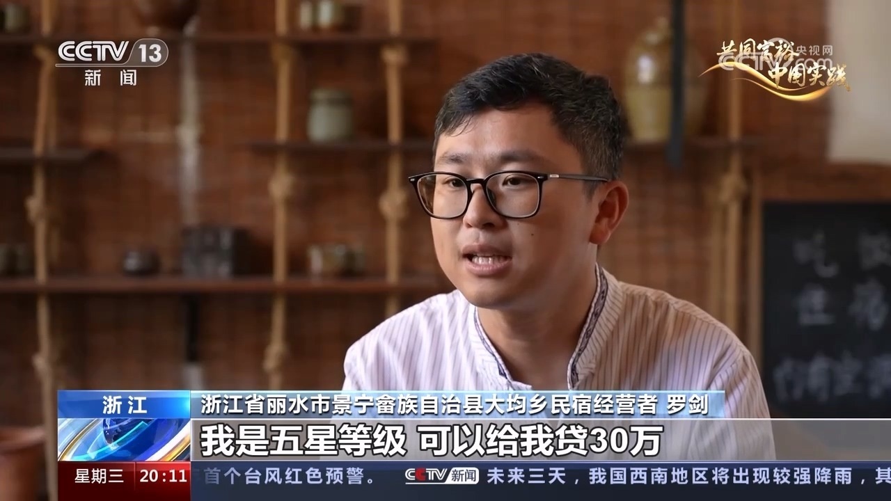 浙江省麗水市景寧畬族自治縣大均鄉(xiāng)民宿經(jīng)營(yíng)者 羅劍:以我的個(gè)人(生態(tài)信用)等級(jí),我是五星等級(jí),可以給我貸30萬(wàn),而且我了解了年利率,它是3.85%,算起來(lái)是最低的,所以說(shuō)我就去貸了。