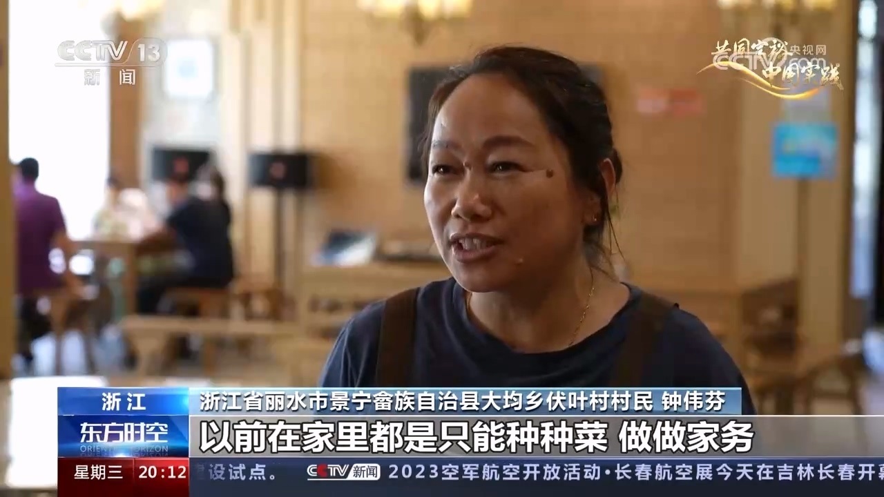 浙江省麗水市景寧畬族自治縣大均鄉(xiāng)伏葉村村民 鐘偉芬:以前在家里都只能種種菜、做家務(wù),別的一分錢都掙不來(lái),現(xiàn)在在家門口(就業(yè))。這里的服務(wù)員全部都是我們本村的,五六十歲了,出去打工也沒(méi)人要,在這里干干服務(wù)員一個(gè)月還能收入三千,這也很好的。