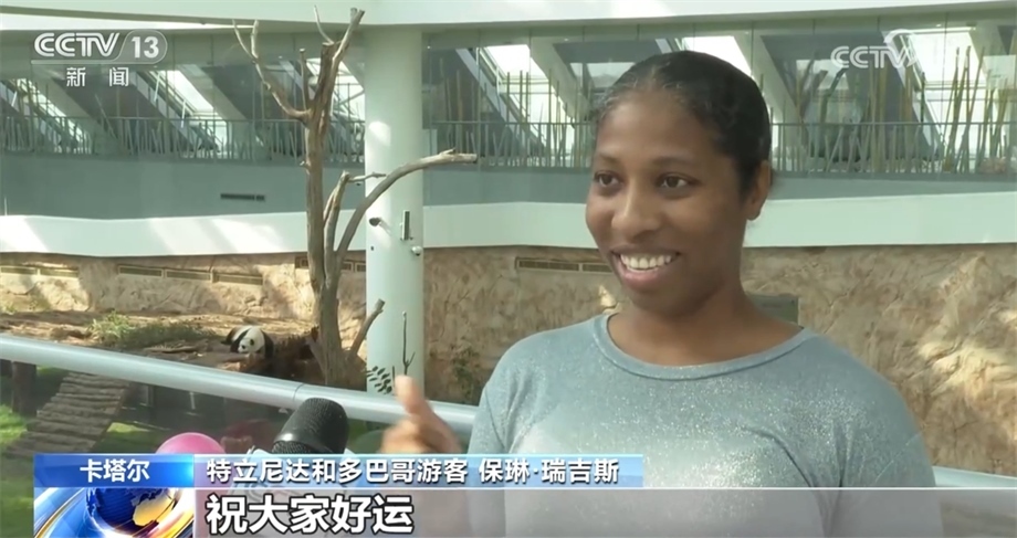 在卡塔爾的大熊貓館,很多前來參觀的游客得知大運(yùn)會吉祥物“蓉寶”的原型也是一只熊貓,他們紛紛預(yù)祝大運(yùn)會圓滿成功,祝福運(yùn)動員們享受比賽,取得好成績。