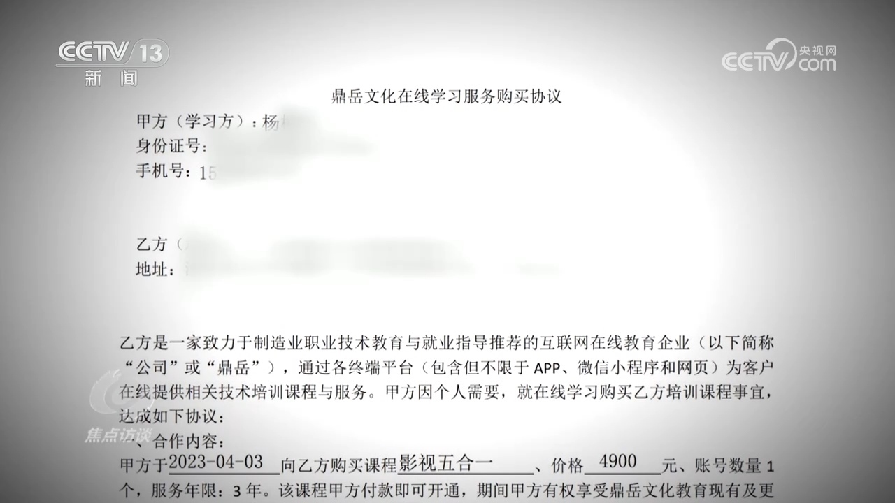 然而,這次鼎岳公司的工作人員也沒再用推薦兼職來安撫他,而是直接拿出了培訓(xùn)合同,上面寫著“自用戶繳費(fèi)兩個(gè)月后,鼎岳將不再為用戶提供退費(fèi)服務(wù)?!笨粗@份自己簽了字的培訓(xùn)合同,小楊意識(shí)到退費(fèi)難了。