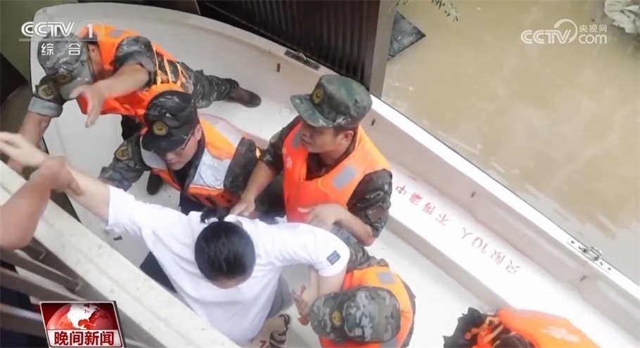最終,官兵們用沖鋒舟撞開大門擠進(jìn)小區(qū),隨后爬上孕婦所在居民樓的二樓護(hù)欄進(jìn)入樓內(nèi),在14樓發(fā)現(xiàn)受困孕婦。為了保證孕婦的安全轉(zhuǎn)移,樓上的官兵小心攙扶孕婦翻過欄桿,官兵們搭成人梯,用自己的肩膀托住孕婦的雙腳,穩(wěn)穩(wěn)地把她轉(zhuǎn)移到?jīng)_鋒舟上。