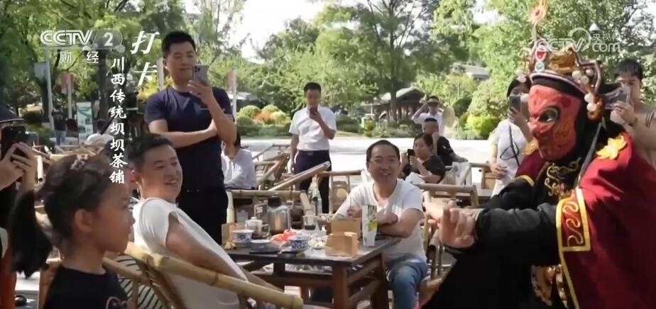 成都臺(tái)記者 劉然然:打卡中國(guó)消費(fèi)新地標(biāo),今天我來(lái)到了位于四川成都高新區(qū)的鐵像寺水街。今天第一項(xiàng),我們來(lái)打卡鐵像寺水街的川味元素。在我身后這個(gè)古香古色的戲臺(tái),不定期就會(huì)有川劇、變臉、茶藝等表演,花上十幾塊錢(qián)泡碗茶,就能在這里享受一天的安逸生活。