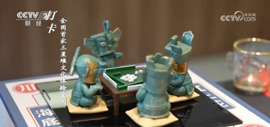 成都臺(tái)記者 劉然然:大家看我手中拿著的銅人,是按照三星堆博物館中的青銅人首鳥(niǎo)身像藏品復(fù)刻的。無(wú)論是造型還是材質(zhì),都盡量做到和館藏一致。這里是三星堆博物館官方授權(quán)的全國(guó)首家體驗(yàn)空間。