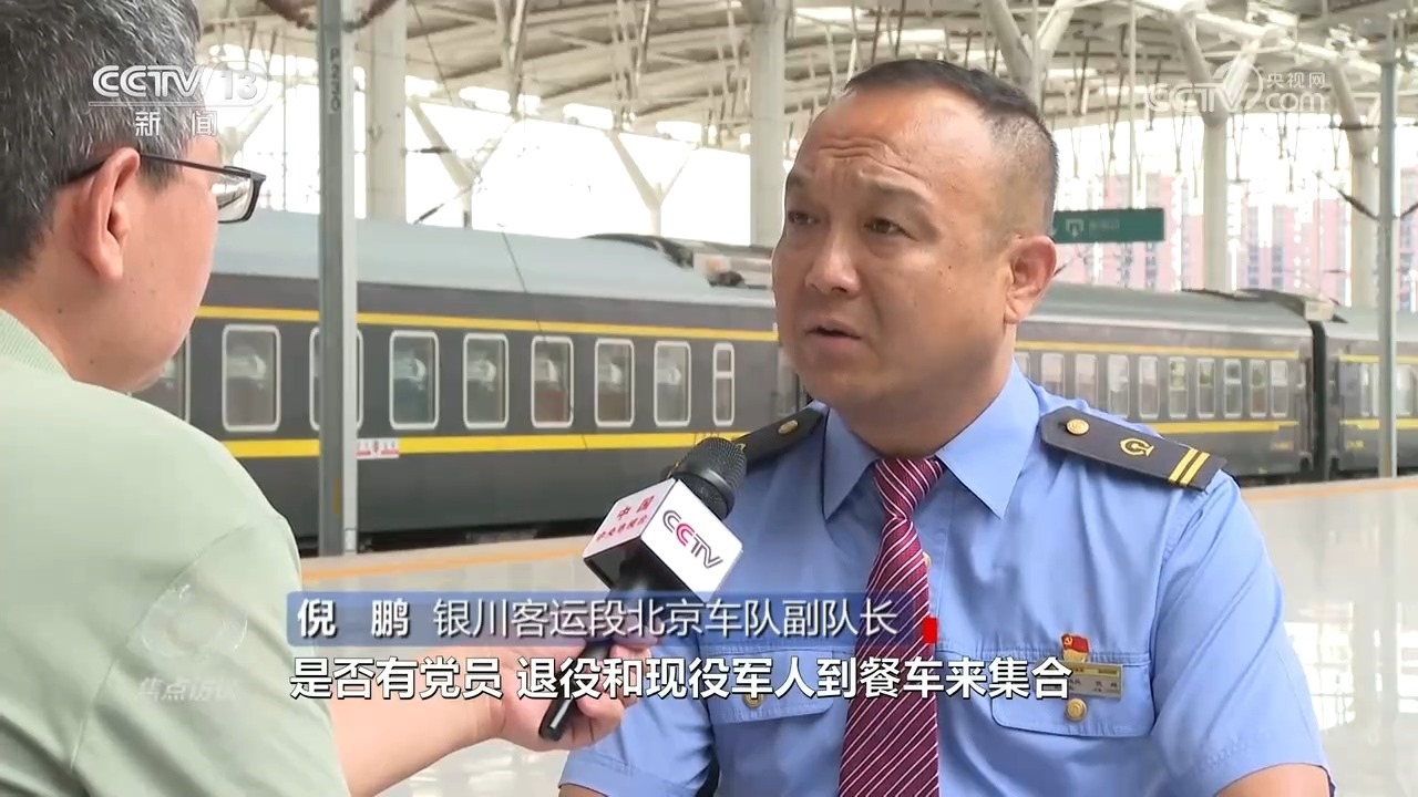 銀川客運(yùn)段北京車隊(duì)副隊(duì)長(zhǎng)倪鵬:“20時(shí)左右,我們通過(guò)廣播召集車廂里面的旅客,是否有黨員、退役和現(xiàn)役軍人,到餐車來(lái)集合,目的是發(fā)揮黨組織作用,讓大家共同攻堅(jiān)克難,做好旅客的安撫工作。”