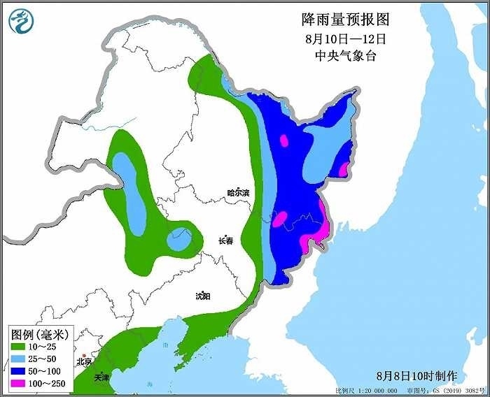降雨預報:10-12日,受“卡努”影響,遼寧東部有中到大雨,吉林東部、黑龍江北部和中東部等地有大到暴雨,其中吉林東北部、黑龍江東南部等局地大暴雨;上述地區(qū)累積雨量30~60毫米,局地可達120~200毫米。最大小時雨強30~50毫米,局地可達60毫米以上。主要降雨時段為10日夜間至12日白天。