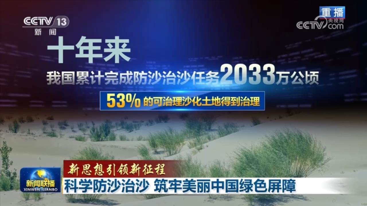 央視網(wǎng)消息(新聞聯(lián)播):習(xí)近平總書記強(qiáng)調(diào),加強(qiáng)荒漠化綜合防治,深入推進(jìn)“三北”等重點生態(tài)工程建設(shè),事關(guān)我國生態(tài)安全、事關(guān)強(qiáng)國建設(shè)、事關(guān)中華民族永續(xù)發(fā)展,是一項功在當(dāng)代、利在千秋的崇高事業(yè)。黨的十八大以來,我國多措并舉推進(jìn)荒漠化治理,防沙治沙取得巨大成就,進(jìn)一步筑牢美麗中國綠色屏障。