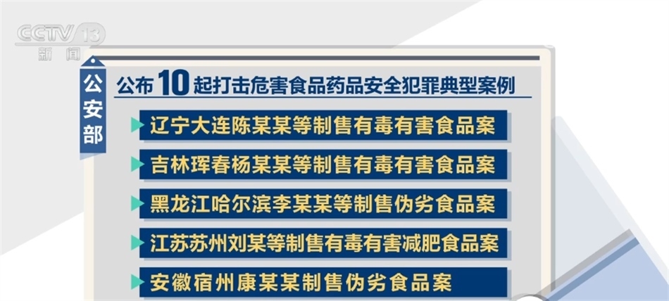 當(dāng)天,公安部還公布了10起打擊危害食品藥品安全犯罪典型案例,涵蓋農(nóng)產(chǎn)品、水產(chǎn)品、肉制品、減肥產(chǎn)品、保健食品等食品領(lǐng)域,以及治療風(fēng)濕、腰腿疼痛、哮喘等老年人常見疾病藥品領(lǐng)域,具有一定的典型性、代表性。案件中有的非法添加化學(xué)藥物,有的濫用食品添加劑,有的添加化學(xué)藥成分冒充所謂“純中藥”,犯罪手法隱蔽、性質(zhì)惡劣,給人民群眾身體健康帶來嚴(yán)重威脅。
