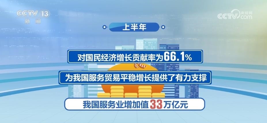 2023年以來,國民經(jīng)濟持續(xù)穩(wěn)定恢復,服務業(yè)保持較快增長。上半年,我國服務業(yè)增加值33萬億元,同比增長6.4%,占GDP比重為56%,高于上年同期1.6個百分點,對國民經(jīng)濟增長貢獻率為66.1%,為我國服務貿易平穩(wěn)增長提供了有力支撐。
