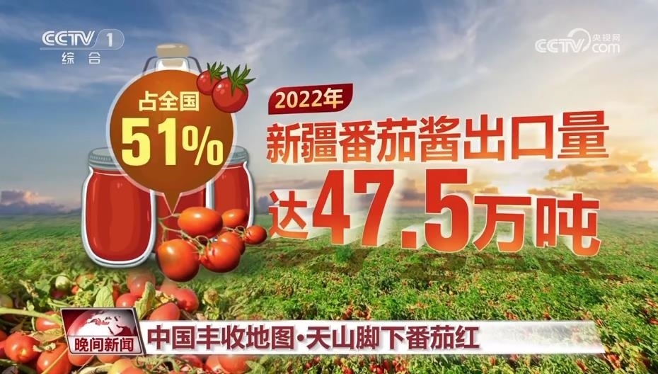 如今,加工番茄已成為新疆百姓創(chuàng)收致富的主導產業(yè)。 全球每4瓶番茄醬中,就有1瓶的原料來自新疆。烏魯木齊海關數據顯示,2022年新疆番茄醬出口量達47.5萬噸,占全國的51%。