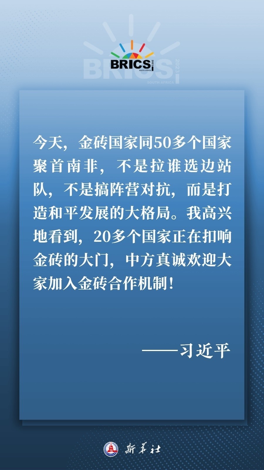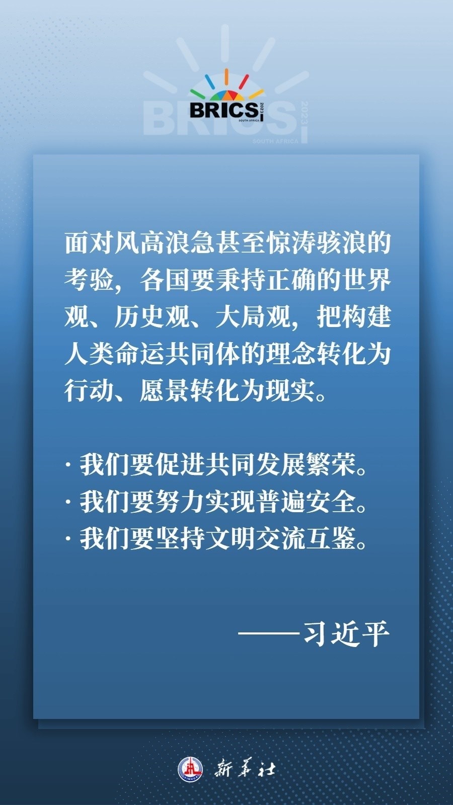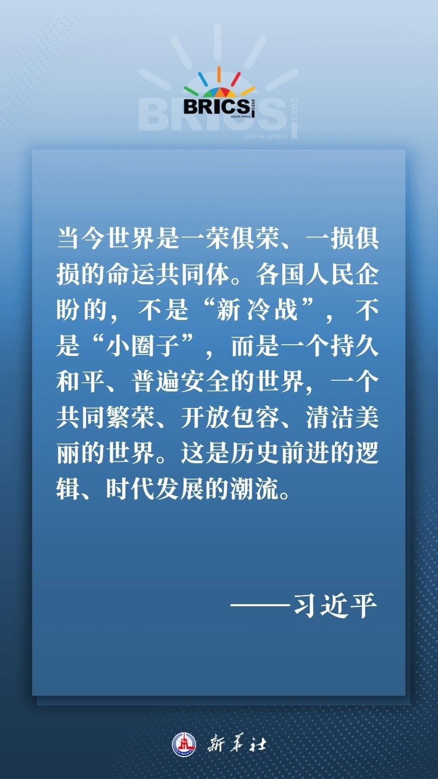 當(dāng)?shù)貢r間8月22日下午,國家主席習(xí)近平向約翰內(nèi)斯堡金磚國家工商論壇閉幕式發(fā)表致辭,為各國深化團(tuán)結(jié)合作、應(yīng)對風(fēng)險挑戰(zhàn)、共建更加美好的世界指明方向——