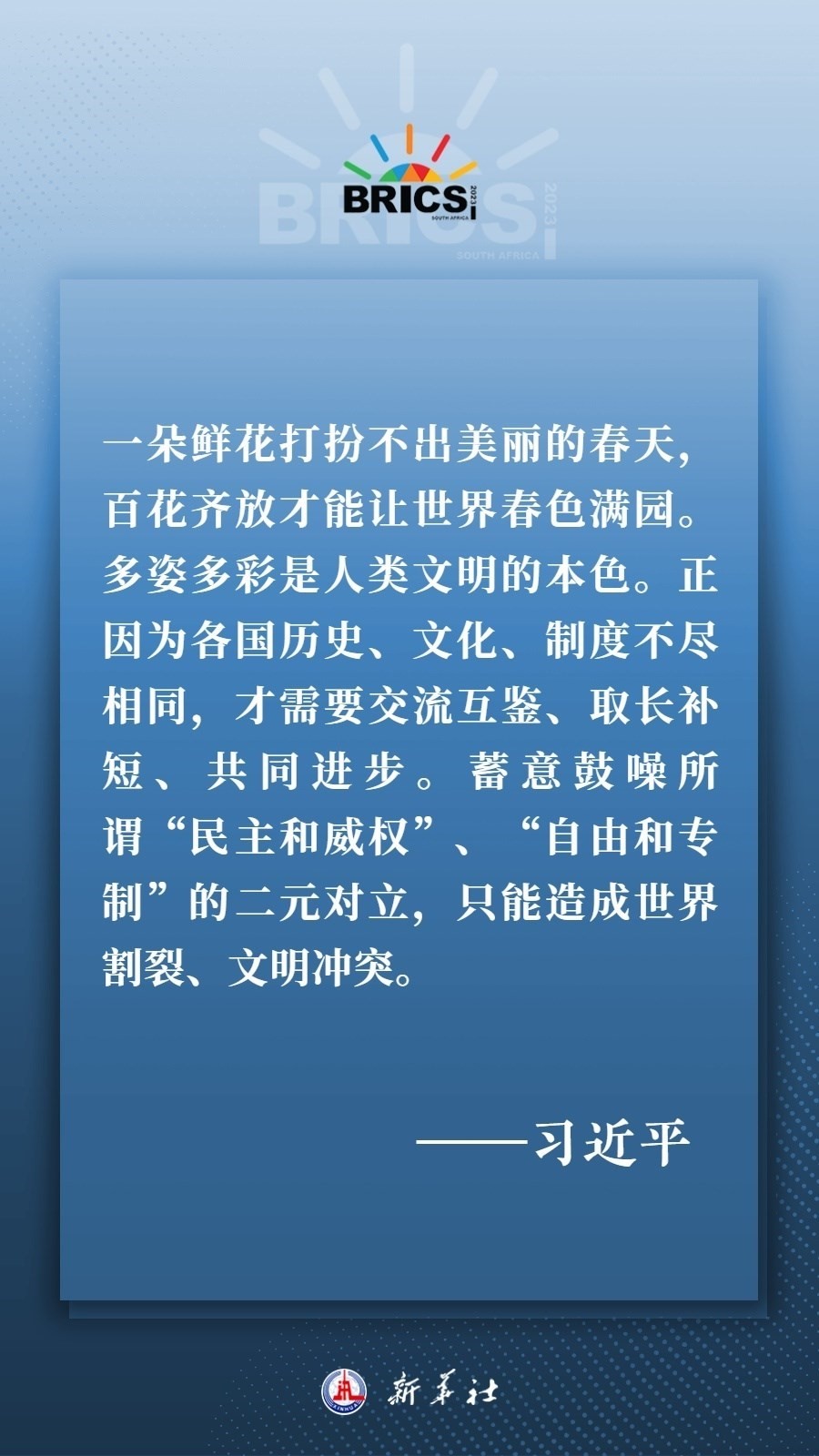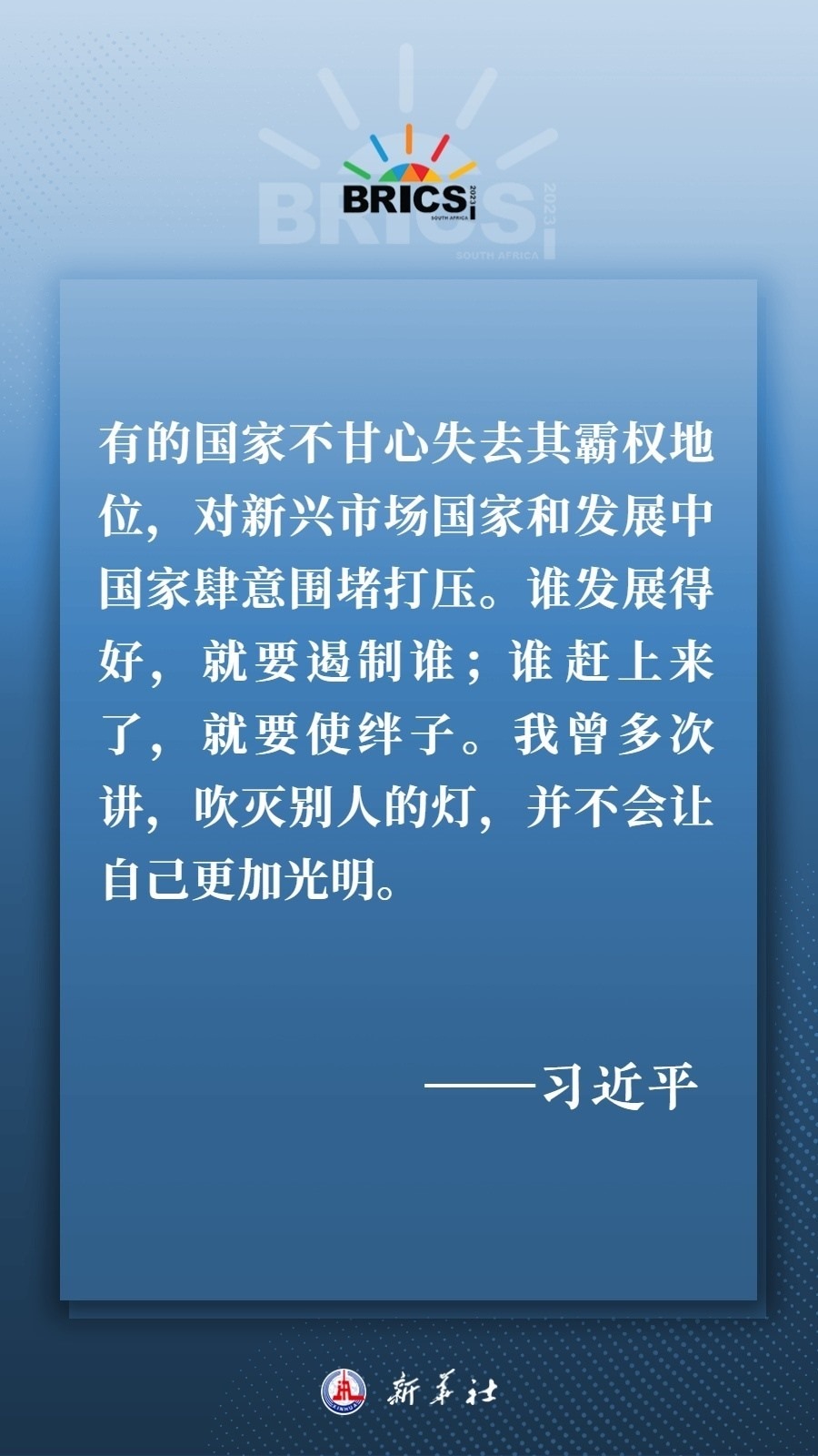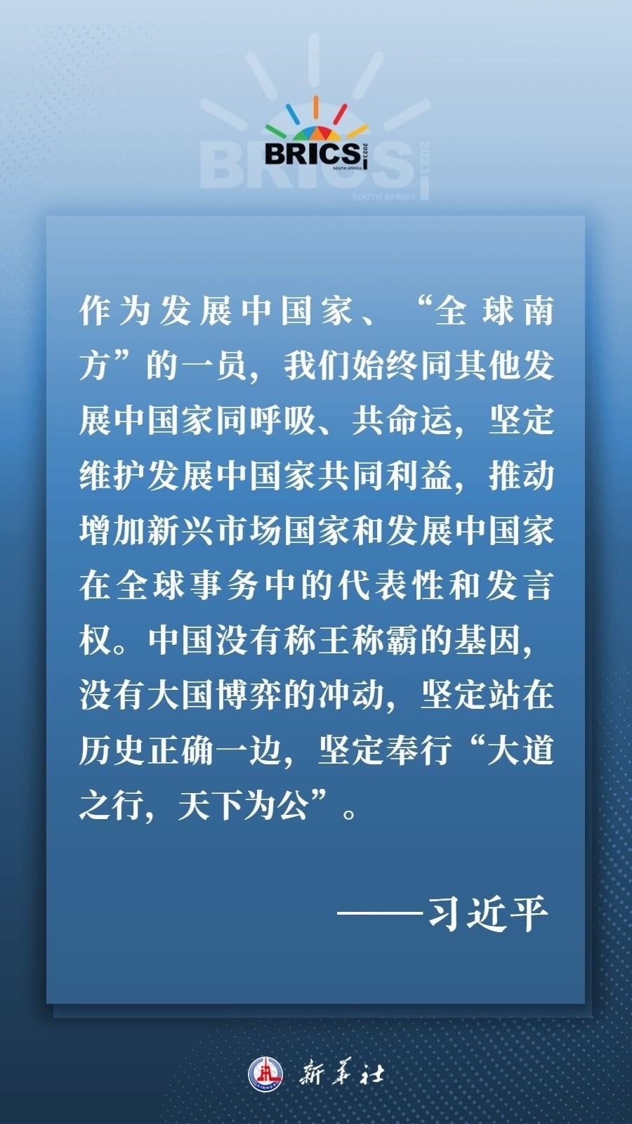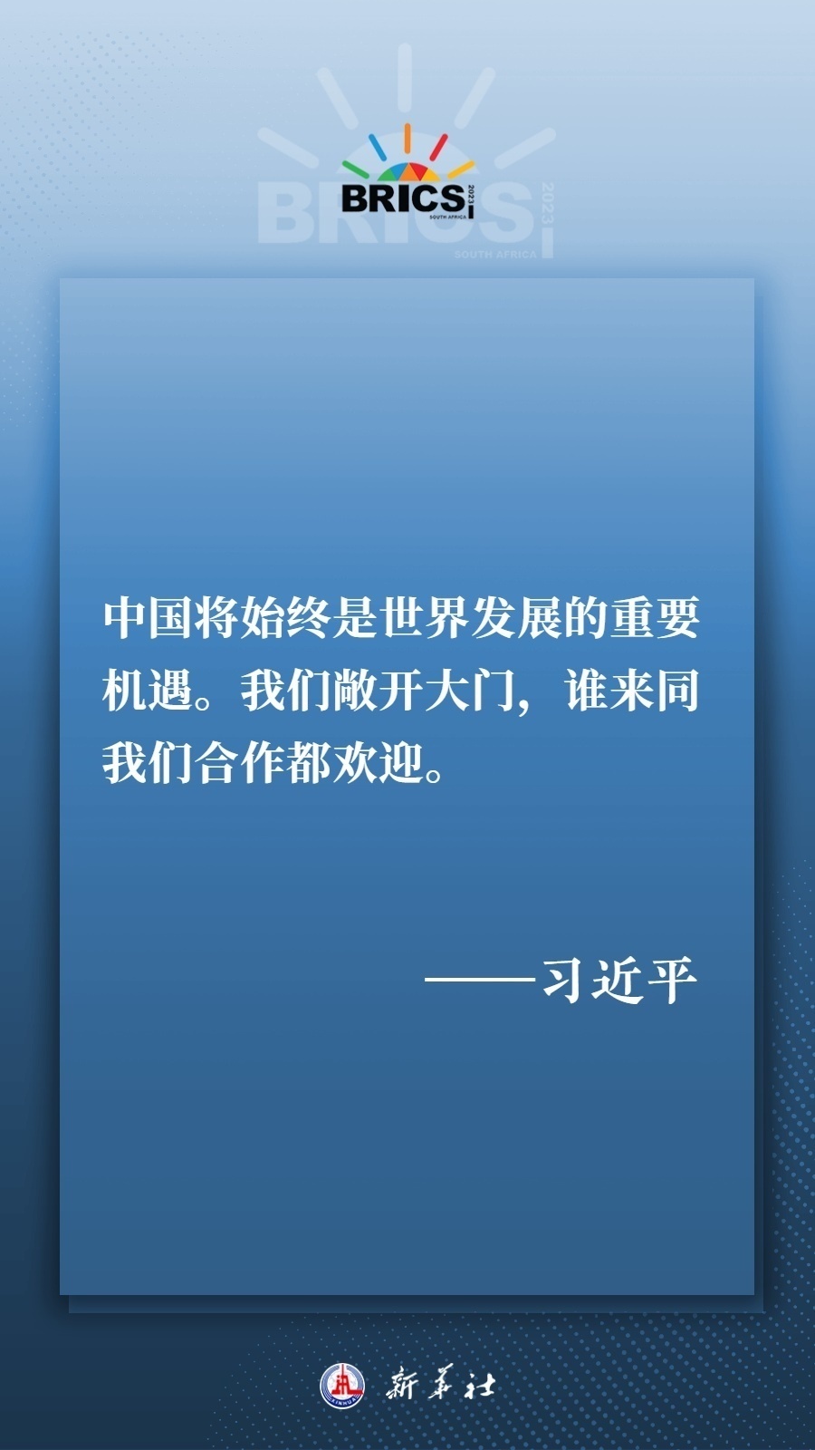 當(dāng)?shù)貢r間8月22日下午,國家主席習(xí)近平向約翰內(nèi)斯堡金磚國家工商論壇閉幕式發(fā)表致辭,為各國深化團(tuán)結(jié)合作、應(yīng)對風(fēng)險挑戰(zhàn)、共建更加美好的世界指明方向——