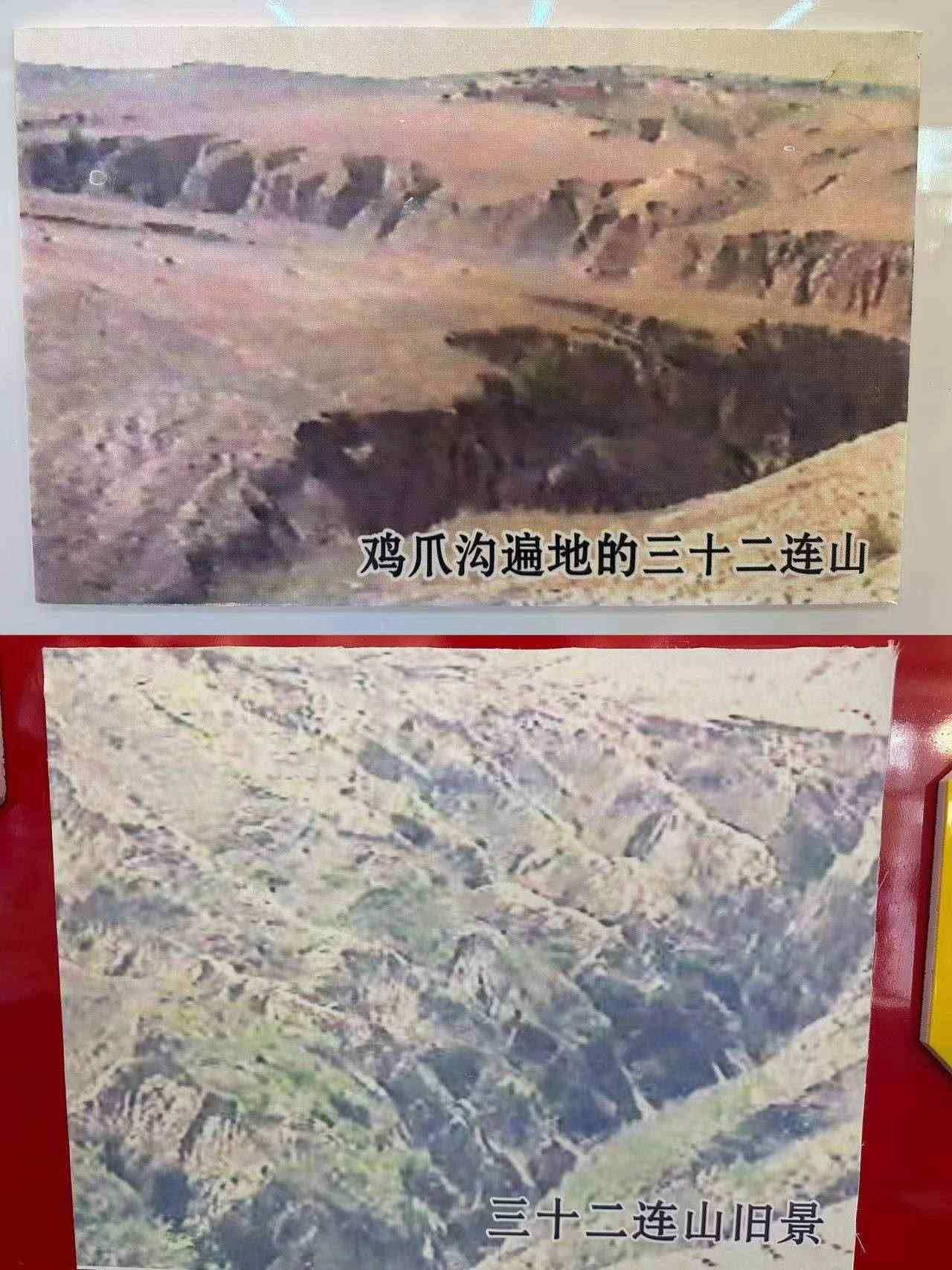 曾任三十二連山小流域綜合治理工程總指揮的韓旭東回憶說,這里曾經(jīng)黃沙漫天、洪水泛濫,刮起風(fēng)沙,白天能見度極低,一場(chǎng)風(fēng)沙能把剛長(zhǎng)起來(lái)的苗蓋死,是典型的“禿山光嶺干河套,牛羊啃草滿山繞”。