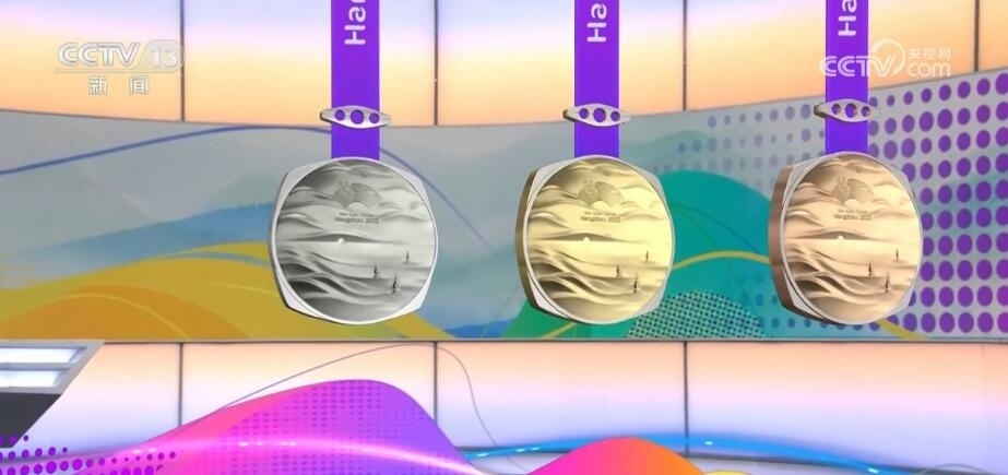 杭州亞運(yùn)會(huì)獎(jiǎng)牌名為“湖山”?!昂健睂⒘间疚幕姆叫斡耒蛨A形的獎(jiǎng)?wù)氯跒橐惑w,正面用凸出的線條勾勒出“三面云山一面城”的杭城畫卷,湖水漣漪,山巒起伏。獎(jiǎng)牌上方的束扣是一個(gè)帶有倒影的三孔橋,設(shè)計(jì)取自京杭大運(yùn)河最南端的拱宸橋。一塊獎(jiǎng)牌,將杭州的三處世界文化遺產(chǎn):良渚、西湖、大運(yùn)河都融入其中。