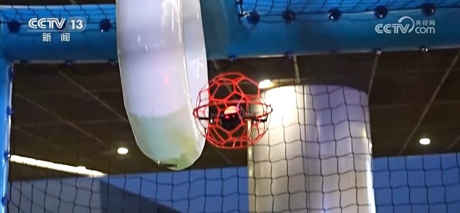 在河南鄭州,記者看到,一場“市集+運動”的新玩法正在傍晚進行。眼前,這個被稱為“天上飛的足球運動”,就吸引了不少消費者。通過操控搖桿來控制方向,讓無人機足球在空中飛行,比賽時,雙方隊員就是利用這個球形飛行器來進行足球比賽。