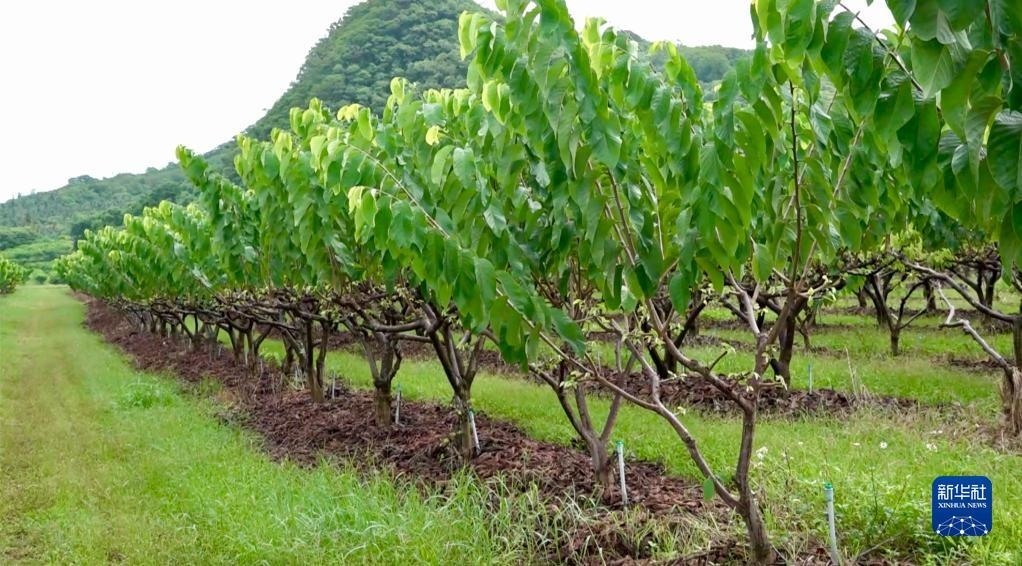 這是在臺東縣拍攝的一家番荔枝果園(8月9日攝)。新華社記者 王承昊 攝