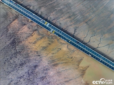 浙江嘉興嘉紹大橋附近,錢塘江退潮后現(xiàn)“潮汐樹”景觀,美如畫卷。