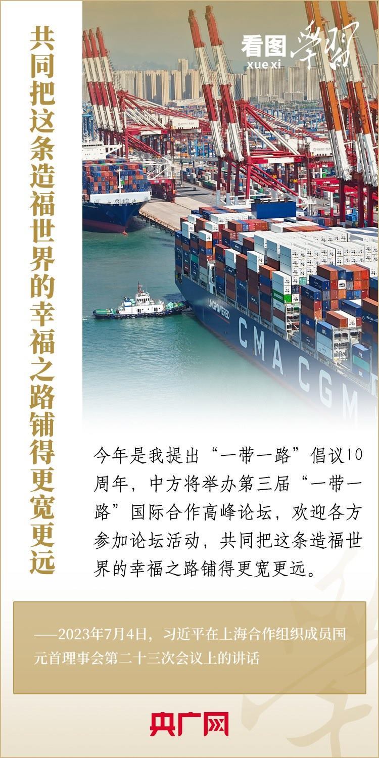 2013年金秋,習近平主席開創(chuàng)性提出共建“絲綢之路經(jīng)濟帶”和“21世紀海上絲綢之路”,即“一帶一路”倡議。十年來,共建“一帶一路”倡議從共商共建共享的“大寫意”,到精謹細膩的“工筆畫”,影響力和感召力不斷擴大。在“一帶一路”倡議提出10周年之際,《看圖學習》為您梳理習近平主席的一系列重要論述。一起來學習!