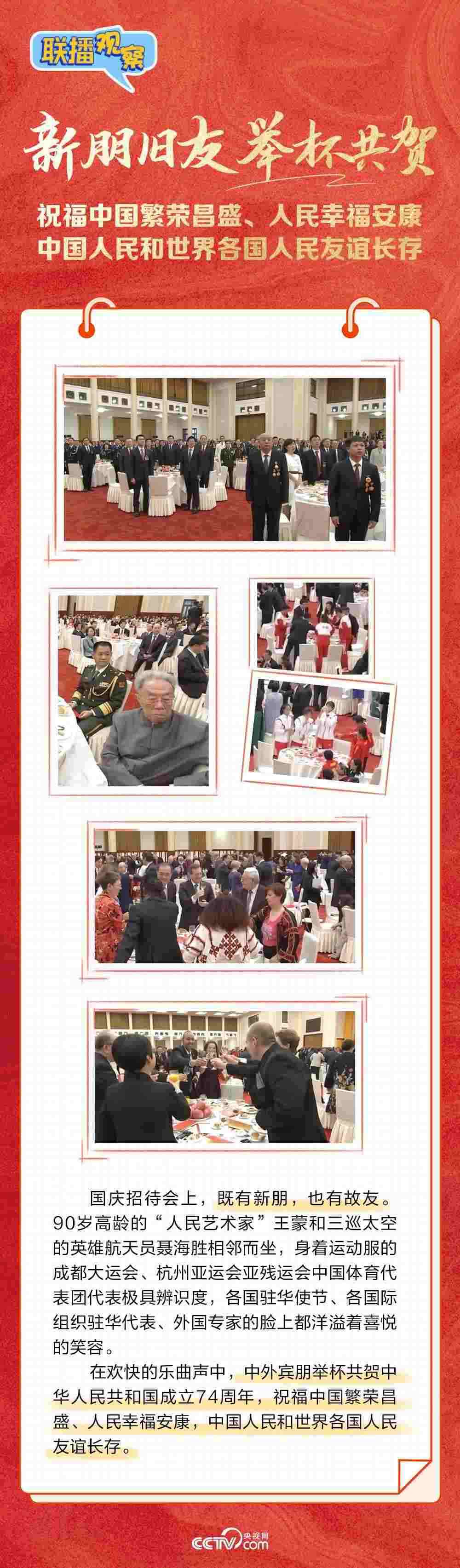 在歡快的樂曲聲中,中外賓朋舉杯共賀中華人民共和國成立74周年。作為一場“簡約而不簡單”的高規(guī)格國宴,習(xí)近平總書記在講話中強調(diào)了哪些重點內(nèi)容?國慶招待會的餐桌有哪些亮點細(xì)節(jié)?都有哪些新朋舊友出現(xiàn)在招待會上?央視網(wǎng)《聯(lián)播觀察》與您一同“云參會”。