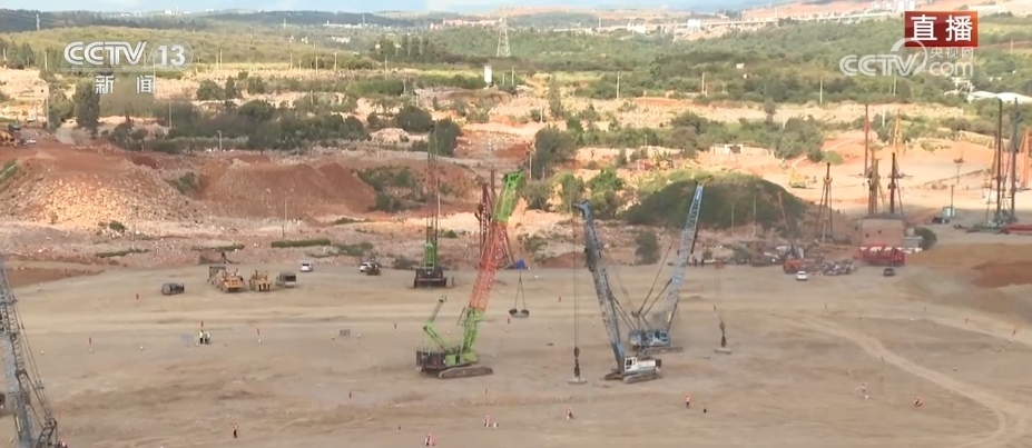 總臺記者 劉文杰:在昆明長水機(jī)場改擴(kuò)建工程的現(xiàn)場,75萬多平方米的作業(yè)范圍內(nèi),有100多臺大型碎石樁基和強(qiáng)夯機(jī)。這些高達(dá)二三十米的設(shè)備,它們遍布整個(gè)施工場地,在技術(shù)人員操作下,正在忙碌地進(jìn)行施工作業(yè)。在工地里穿梭的這些運(yùn)輸車輛,從其他地方往這里拉送建筑材料,因?yàn)楝F(xiàn)在施工的需求量大,每天要300多臺車來回運(yùn)輸才能保障到位。