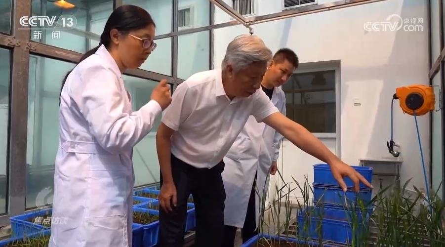 在河南省農(nóng)業(yè)科學(xué)院的玻璃溫室,50株剛剛破土一個(gè)月的小麥新品種幼苗長(zhǎng)勢(shì)不錯(cuò)。小麥品種的培育者——小麥育種專(zhuān)家許為鋼院士帶著團(tuán)隊(duì)細(xì)心地查看這些幼苗。