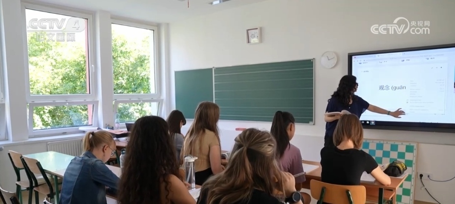 這是位于匈牙利首都布達(dá)佩斯的一所匈中雙語學(xué)校。周一上午的一節(jié)中文課,學(xué)生們正在學(xué)習(xí)一些職場常用的中文,每個(gè)人都聽得聚精會(huì)神。這所學(xué)校也是納入匈牙利國民教育體系的公立學(xué)校,在這里漢語是必修課。