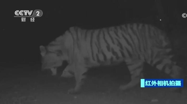 吉林琿春:東北虎凌晨出行 被監(jiān)控鏡頭拍下