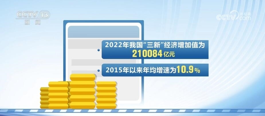 2022年,我國(guó)“三新”經(jīng)濟(jì)增加值為210084億元,2015年以來(lái)年均增速為10.9%,比同期GDP現(xiàn)價(jià)增速高2.5個(gè)百分點(diǎn),相當(dāng)于GDP的比重為17.36%?!叭隆苯?jīng)濟(jì)不斷發(fā)展,已成為帶動(dòng)經(jīng)濟(jì)轉(zhuǎn)型升級(jí)、增強(qiáng)經(jīng)濟(jì)活力的重要力量。