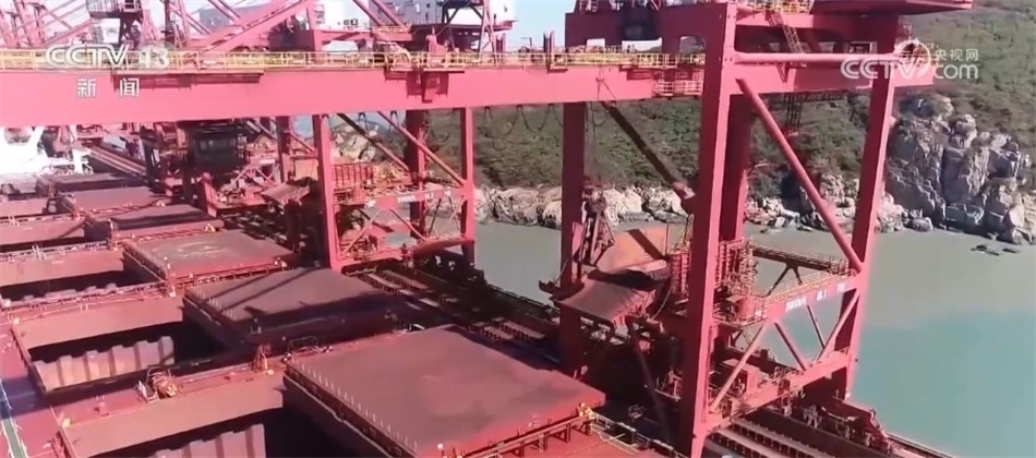 記者來到寧波舟山港鼠浪湖礦石中轉(zhuǎn)碼頭時(shí),一個(gè)個(gè)抓斗正忙著從巨輪上接卸礦石。今年以來,40萬噸礦船是這里的???。作為大宗物資集散地,寧波舟山港承擔(dān)了長江經(jīng)濟(jì)帶45%的鐵礦石、90%以上的油品中轉(zhuǎn)量。前三季度,寧波舟山港經(jīng)營體系內(nèi)鐵礦石的接卸量超過了1億噸。