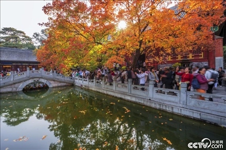 2023年10月30日,北京香山公園內的黃櫨、紅楓等觀葉樹種五彩斑斕,層林盡染,進入最佳觀賞期,吸引眾多游客前來打卡。