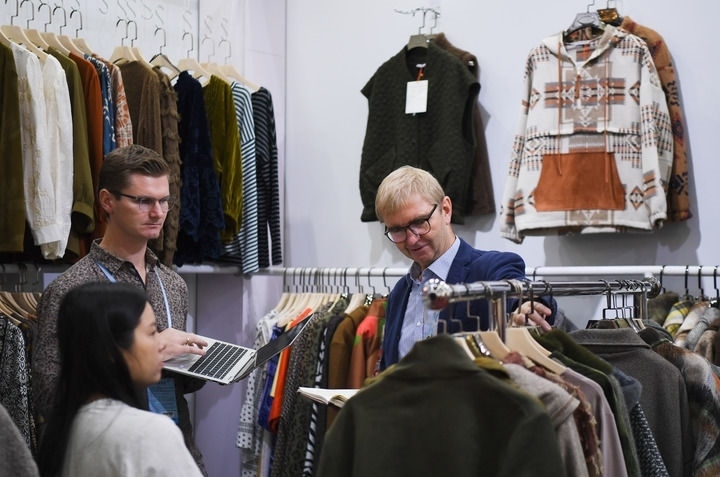 10月31日,外國(guó)采購(gòu)商在服裝展區(qū)參觀洽談。新華社記者 鄧華 攝